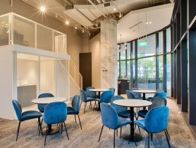 To address the growing appeal for compact office spaces, Woods Square brings with it the Small Office Loft Office (SOLO) concept with 101 such office units ranging from around 495 sq ft to 1,800 sq ft in size. Each SOLO workspace features high floor-to floor heights of 5m and a furniture platform, offering more volume compared to that of a similarly sized typical office unit.